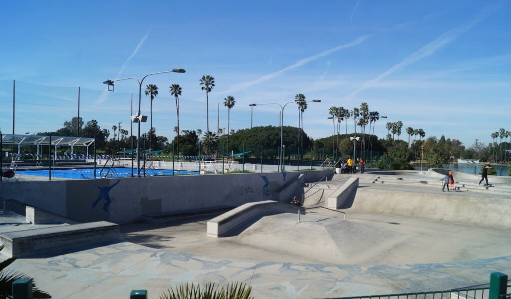 Alondra Skatepark is more than just a destination for skaters — it’s a multi-use community zone where skateboarding blends into the rhythm of a larger, family-friendly park. It’s the kind of place where you can spend the whole day — skating in the morning, cooling off by the pool in the afternoon, and watching ducks by the pond as the sun sets.